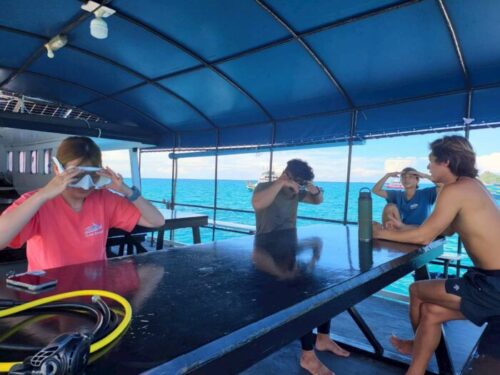 DMTのタスク進行と並行して、ボートの器材やタンクを少しずつ下す作業も。