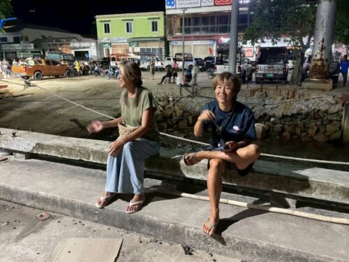 夜は、ナイトボートで出発のまゆちゃんをお見送り。
