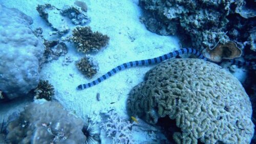 スジアラもなぜか大量にいて、よくみたらウミヘビもいました。