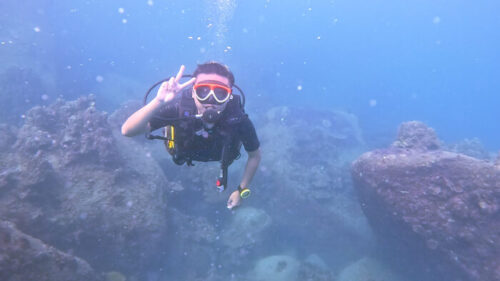 西側は波が出ていることもあり、ダイビングは少し気分を変えて東側で潜ってきました。