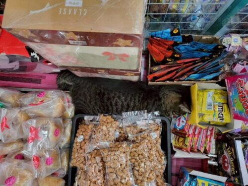 アイカと一緒に行った八百屋の猫。