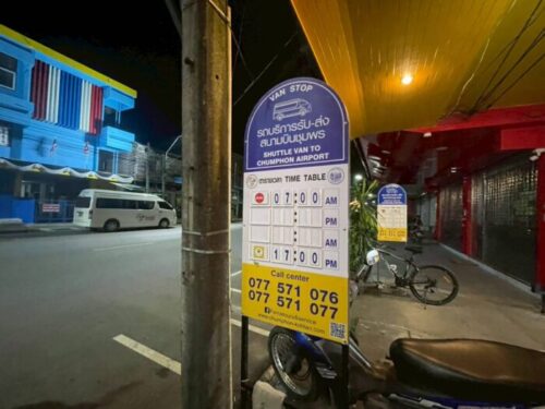 チュンポン港からチュンポン空港までは、ナイトフェリーチケットを購入する際に空港までの送迎(バン・ミニバス)をセットで手配可能です。