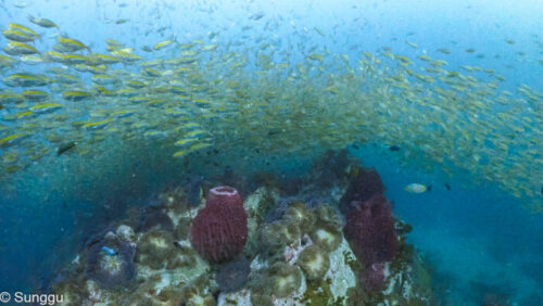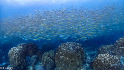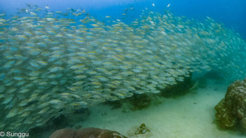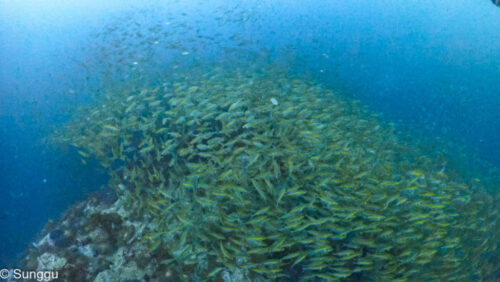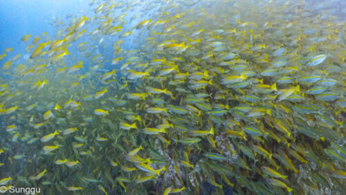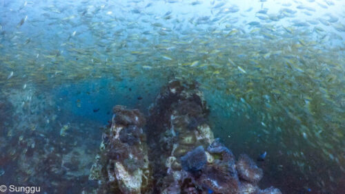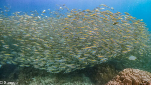 浅場のテルメアジ群れダイブ。
