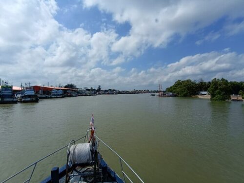 チュンポンの川を上っていきます。タイの川の色。