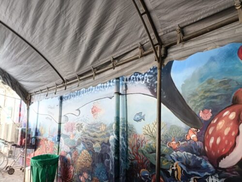 ペンキが剝がされた後に、すぐに職人さんたちが作業を始めました。