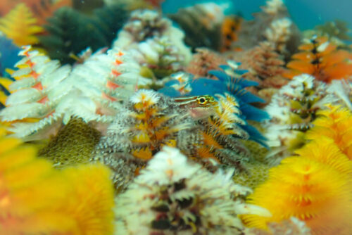 タテジマヘビギンポが花畑の中にいるようなイメージ💐これ以外と撮るのが難しい。タテジマヘビギンポがイバラカンザシの上に乗ると萎んでいくし、タテジマヘビギンポもちょこまか動くし。時間をかけて撮ることをお勧めします☝️